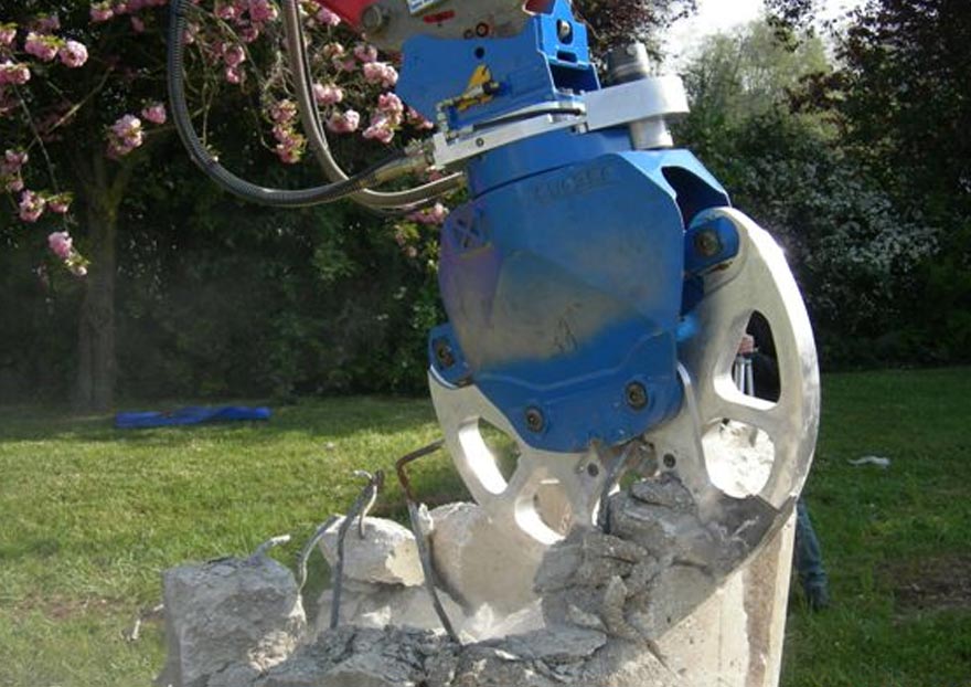Cette cisaille de démolition, compacte et légère, est conçue pour équiper des mini-pelles. Sa grande puissance lui permet de broyer le béton et cisailler le métal.