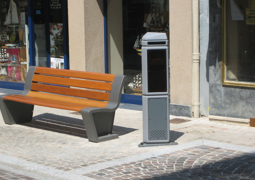 Sa conception en blocs modulaires rotomoulés permet à cette borne d’être déclinée selon 2 modèles : Statio’Pass et Statio’Minute.